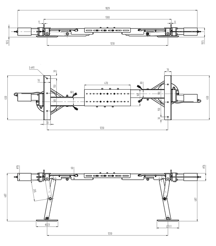 4x legs, 1x module, 1x levelsensor, 1x draadloze afstandbediening, 1x set kabels, 2x bevestiging adapter, geleverd in houten kist L80 x B60 x H55 cm